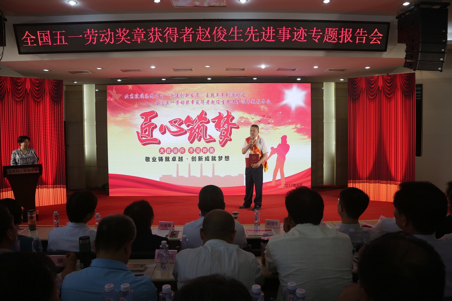 5月26日,集團公司召開了全國五一勞動獎章獲得者趙俊生先進事跡專題報告會。一輕控股公司黨委常委、工會主席劉春梅,一輕工會常務副主席石京萍出席會議。集團公司領導班子成員、在職歷年勞模代表、2017年“最美勞動者”稱號獲得者、優秀團員青年代表及各單位職工代表300余人參加會議。集團公司黨委副書記、工會主席蔣薇主持會議。
